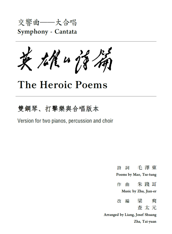 今(2025)年,青年作曲家、我的好友梁爽先生,收到來自牟文昊指揮的邀請,稱深圳歌劇舞劇院合唱團有意演出雙鋼琴版本的《英雄的詩篇》。由於時間比較緊張,梁先生與我共同商討,最終決定在我之前經手的粗糙稿本上,進行修改與打磨,並且加上打擊樂編制,形成可供演出的譜稿。想來也很有意思,當初無心插柳,今卻能繁花盛開。過往也曾多次造訪深圳,卻未能在這座年輕、有活力的城市觀賞演出,而第一次在深圳觀演,竟也是聆賞自己參與改編的室內樂版本《英雄的詩篇》。