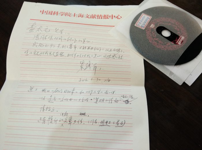 孰料,過了不久,上海音樂學院金橋教授也輾轉聯繫到我,稱當時正在臺灣師範大學擔任客座教授,受朱先生委託帶了東西給我。